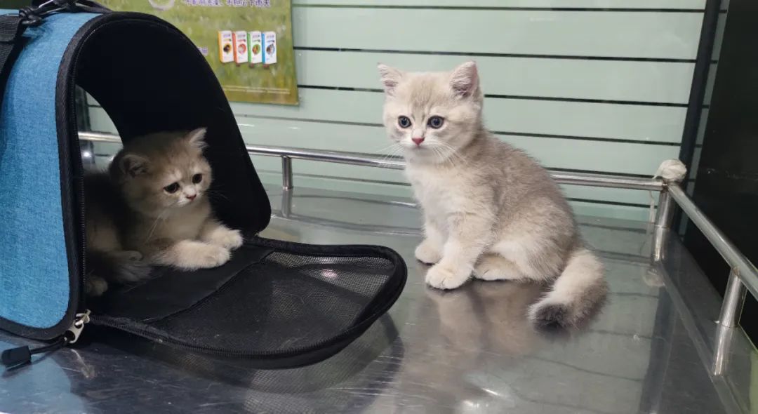 5、今天带三只蓝金小猫崽去打疫苗,第一针疫苗,发张照: