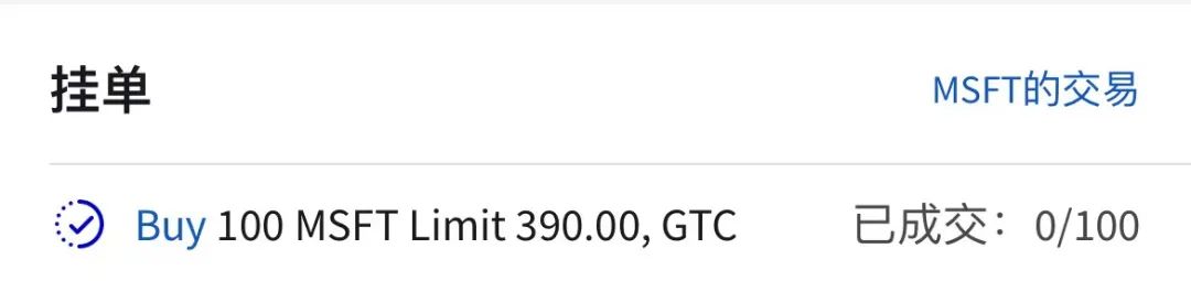 微软按设置好的,触发了405的买入价,下一个设置的防守价位是390美元。